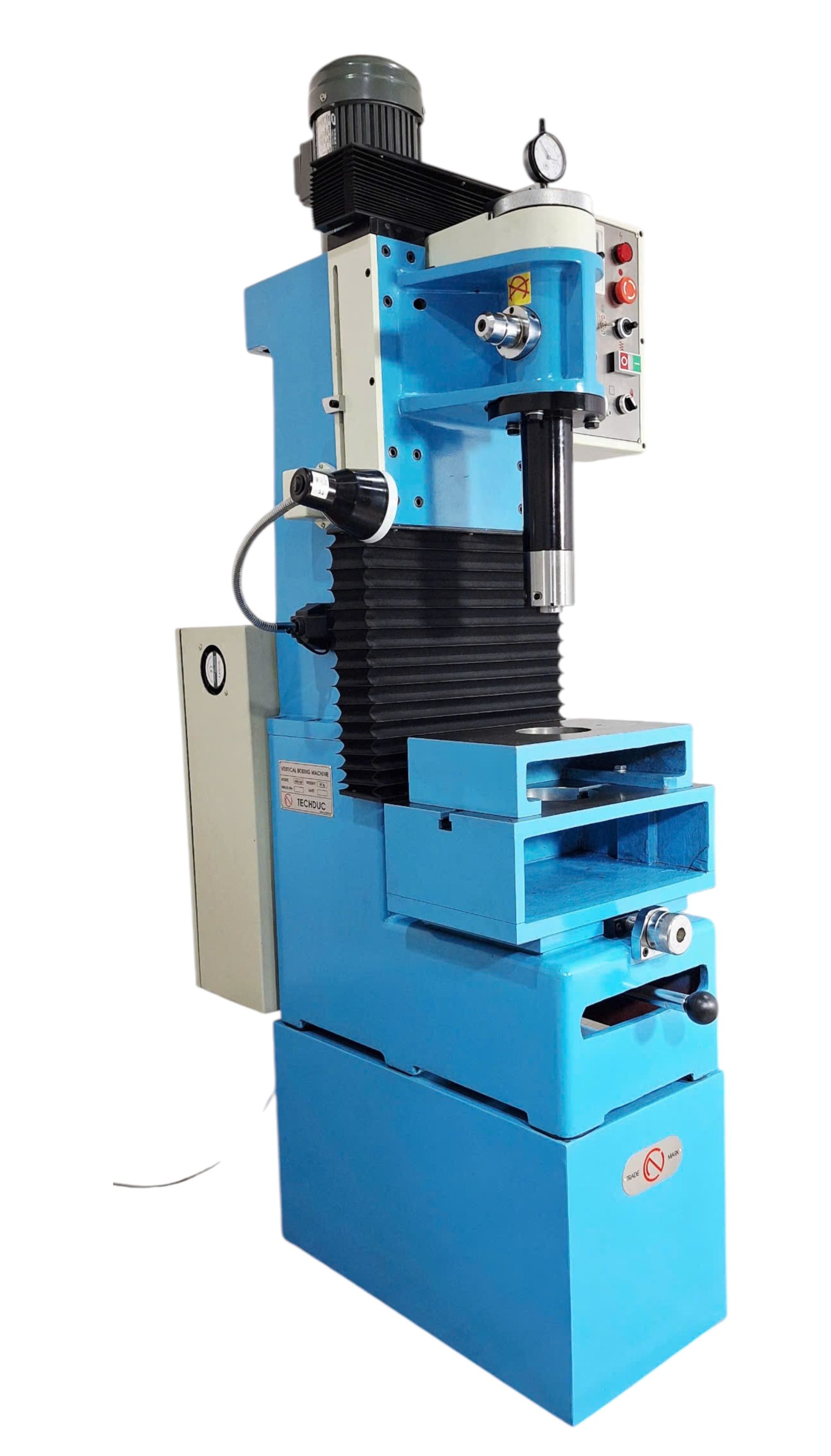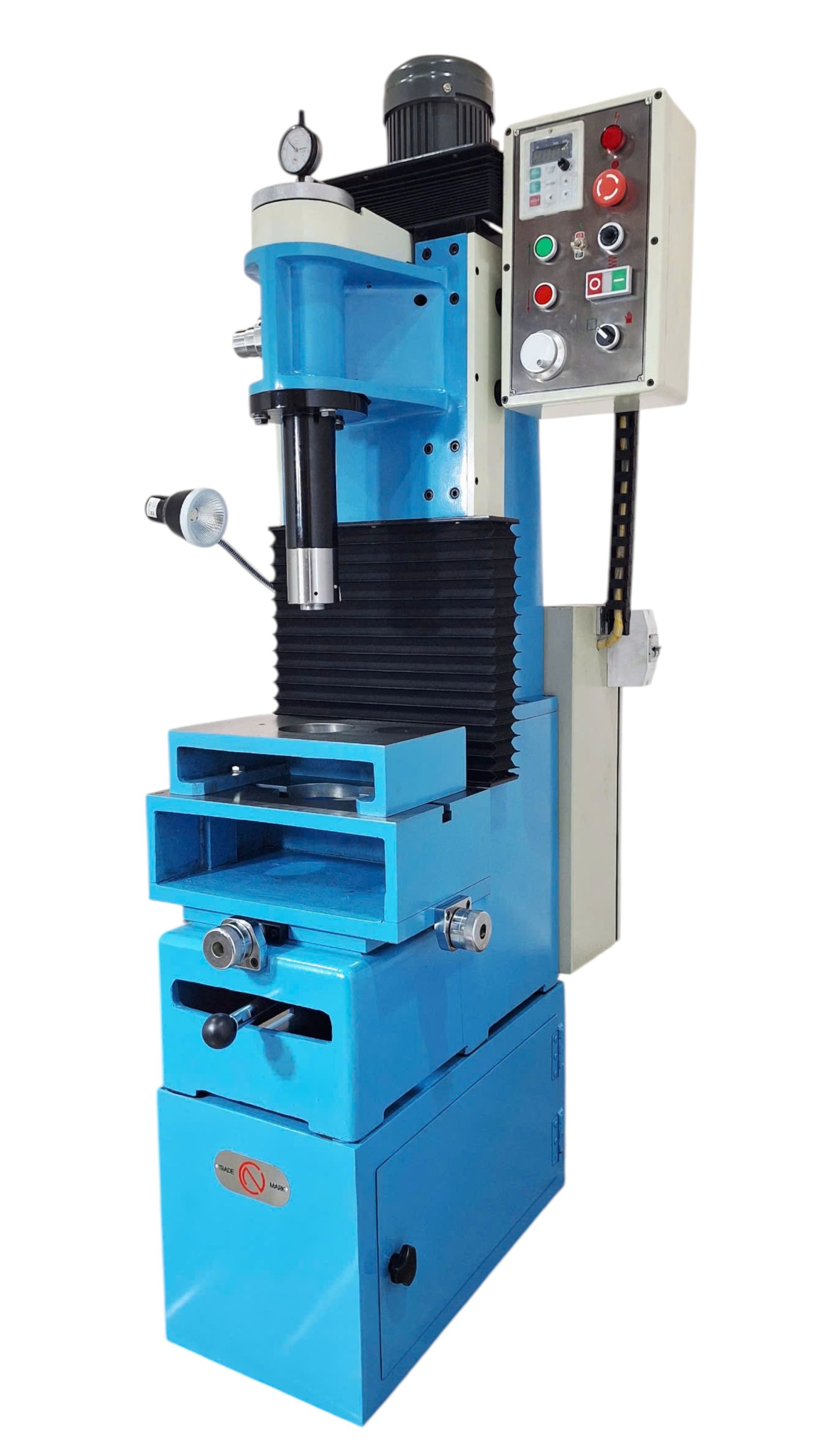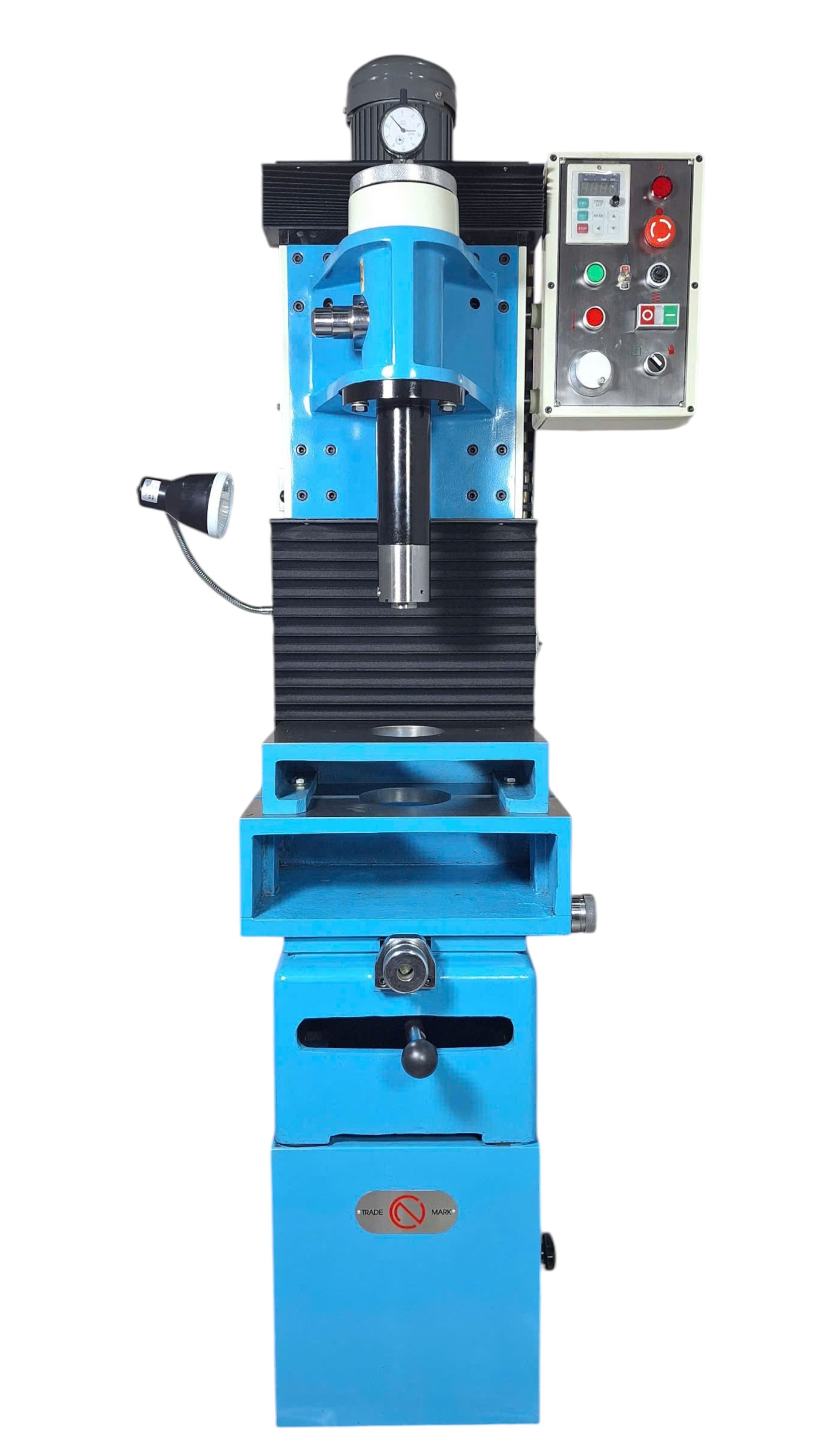 -Main shaft features vertical travel guided by caged ball bearings for accuracy